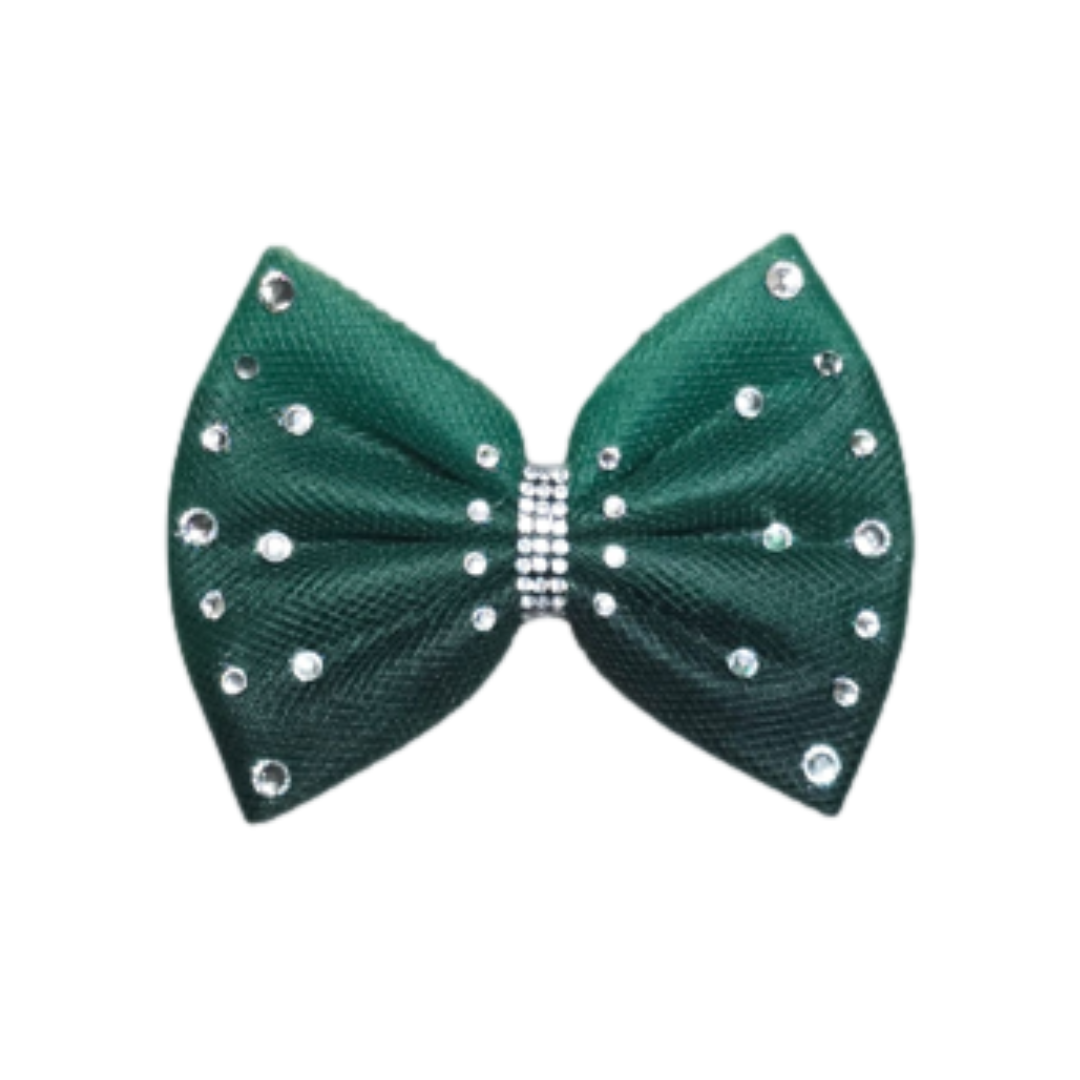 The Green Goddess Bow was created by Gardenia Meadow Bows in collaboration with Chalk Warrior to perfectly match the Green Goddess leotard. This single-layer bow features a dark green to kelly green ombré and is decorated with iridescent rhinestones for a glowing touch.