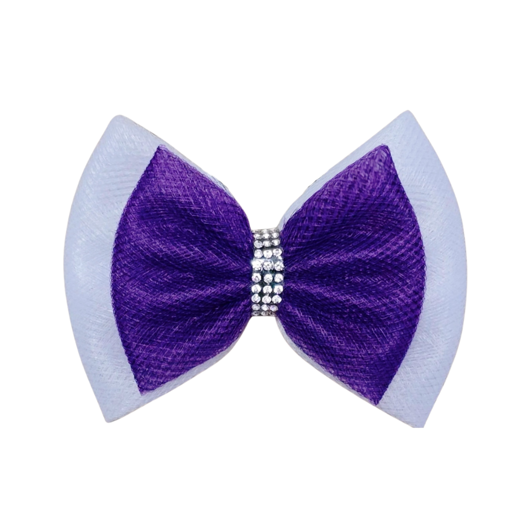 The Violet Vibe bow is a stunning purple and white double bow designed to pair flawlessly with our Violet Vibe Paisley Leotard from the Paisley Party Profile Holder Exclusive collection. Just like the leotard, you can choose to adorn your bow with iridescent crystals or keep it sleek with no embellishments. Crafted by Gardenia Meadow Bows, this piece is part of a special collaboration with Chalk Warrior.